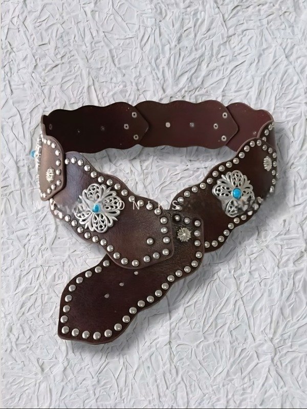 Faja ancha, en eco cuero, con piedras turquesa, moderno, estilo BOHO CHIC.