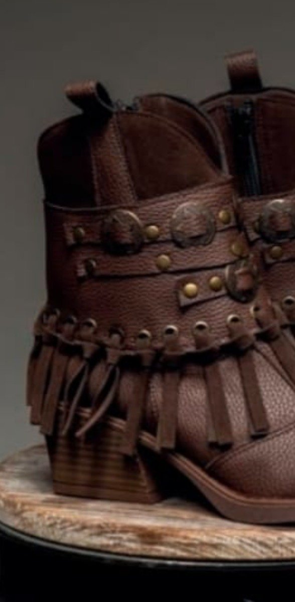 Botas estilo texas, con aplique de herrajes y flecos desmontable.