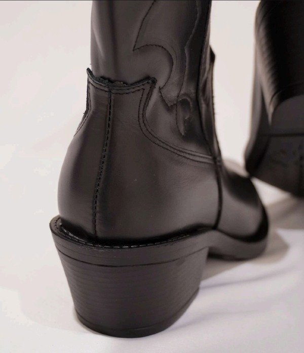 Botas de CUERO, estilo tejano, caña larga, con cierre y pespuntes a tono