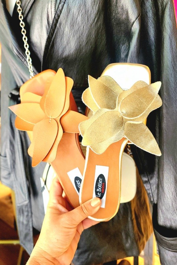 Sandalias bajitas con faja envolvente y aplique hojas, eco cuero.