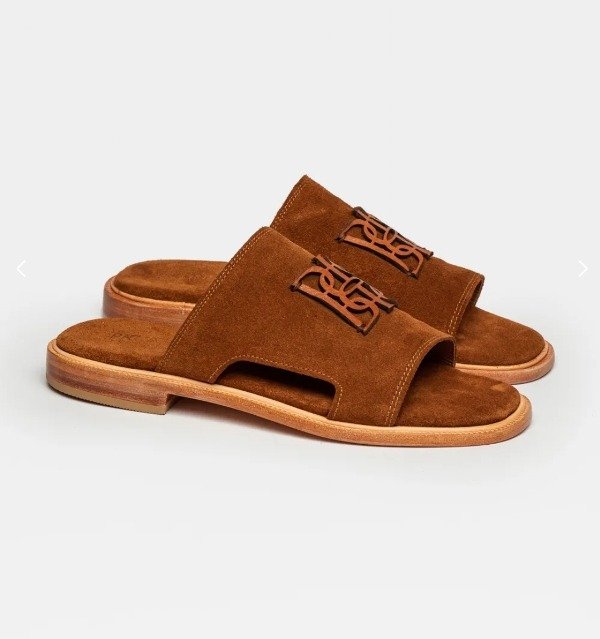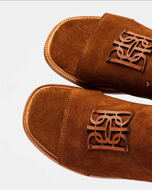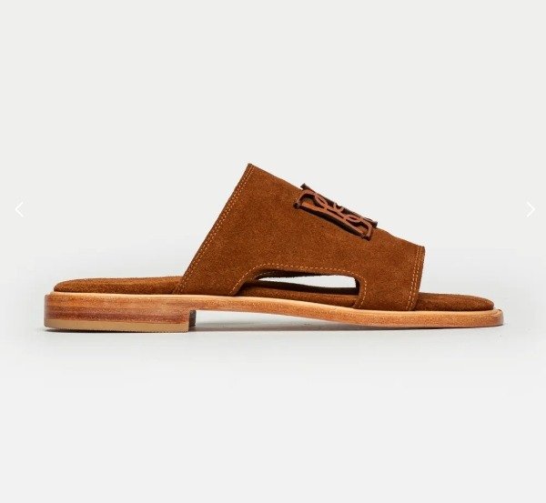 Flat de cuero gamuzado Prune con logo calado y confeccionado de manera artesanal sobre capellada. Cuenta con plantilla confort y forreria de cuero vacuno a tono